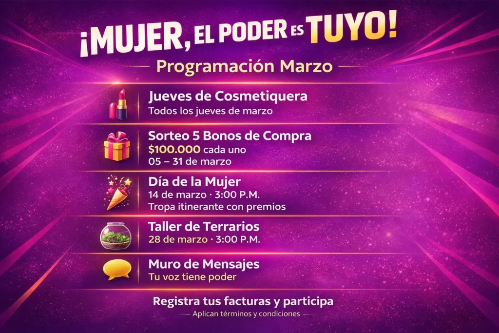 Conoco nuestra agenda Promociones Facebook Instagram ¡Únete a nosotros en nuestras redes sociales para mantenerte al tanto de todos nuestros emocionantes eventos y promociones! ¡Regístrate ahora y no te pierdas los eventos del mes y las últimas noticias del centro comercial! Acepto las política de privacidad.
